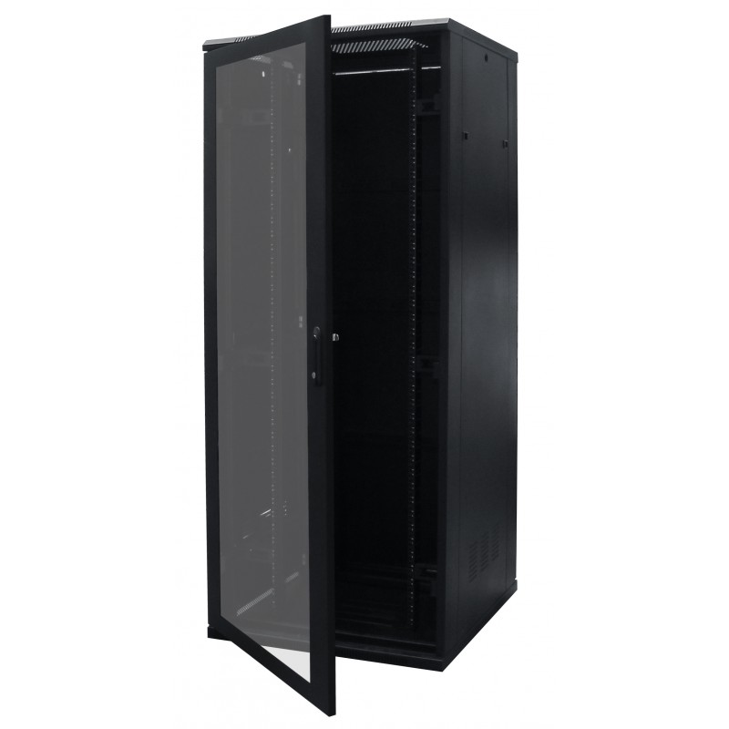 The Data Cabinets are available in various configurations and are supplied fully assembled. Each cabinet utilises a ventilated top and four 19” adjustable front and rear mounting posts. The cabinets feature lift-off sides and a lockable door for maximum access to the internal equipment, with cable access in the base for convenient routing of network cables. The side panels can be fitted with cabinet locks. The cabinet frameworks are finished in black with a perspex lockable front door